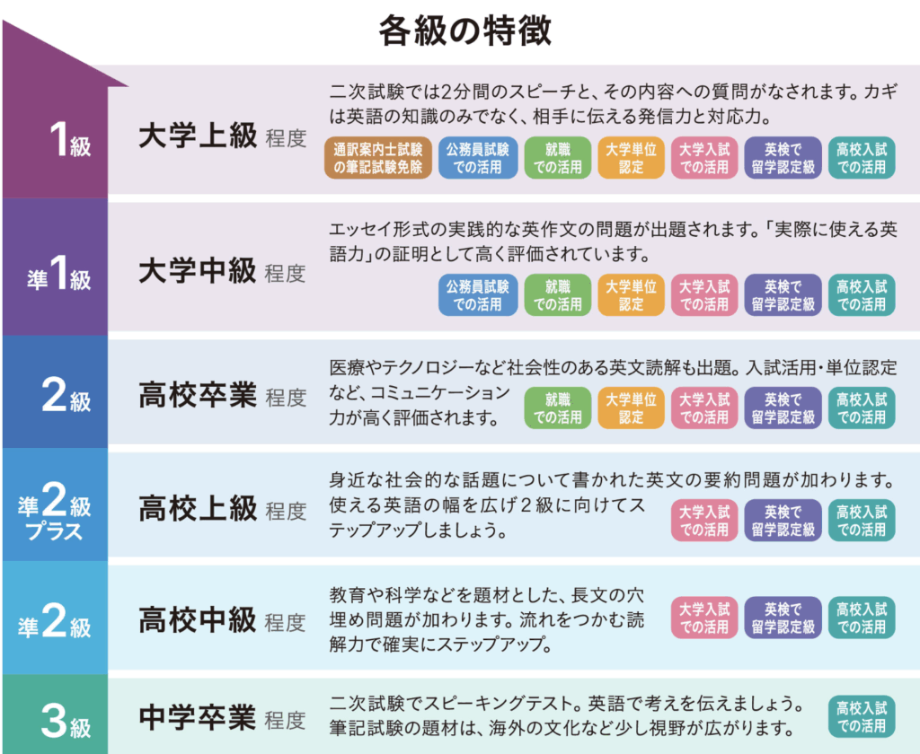 📘 対応レベル(3級 / 準2級 / 2級 / 準1級 / 1級)