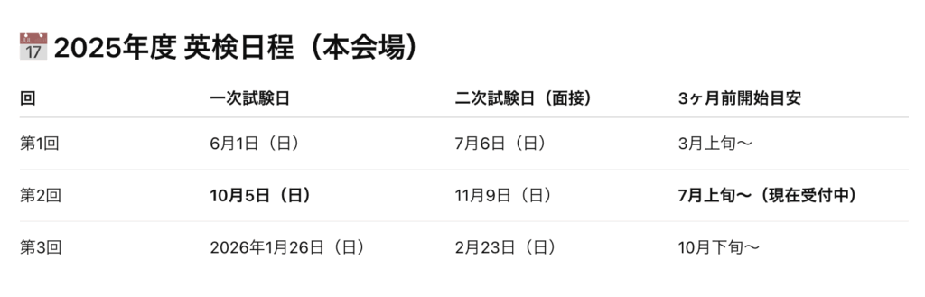 🗓 2025年度第2回 英検の受験は【10月5日(日)】!