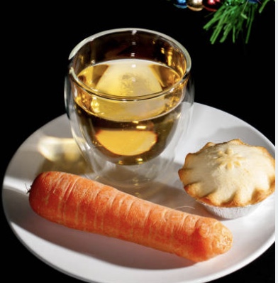 ミンスパイとは、ドライフルーツがいっぱい入ったパイ。飲み物はウイスキーか、ミルクというのが定番です。朝になるとかじられたニンジンや、飲み物がなくなっていることに、子供達が気づいてサンタさんが来たことがわかります。