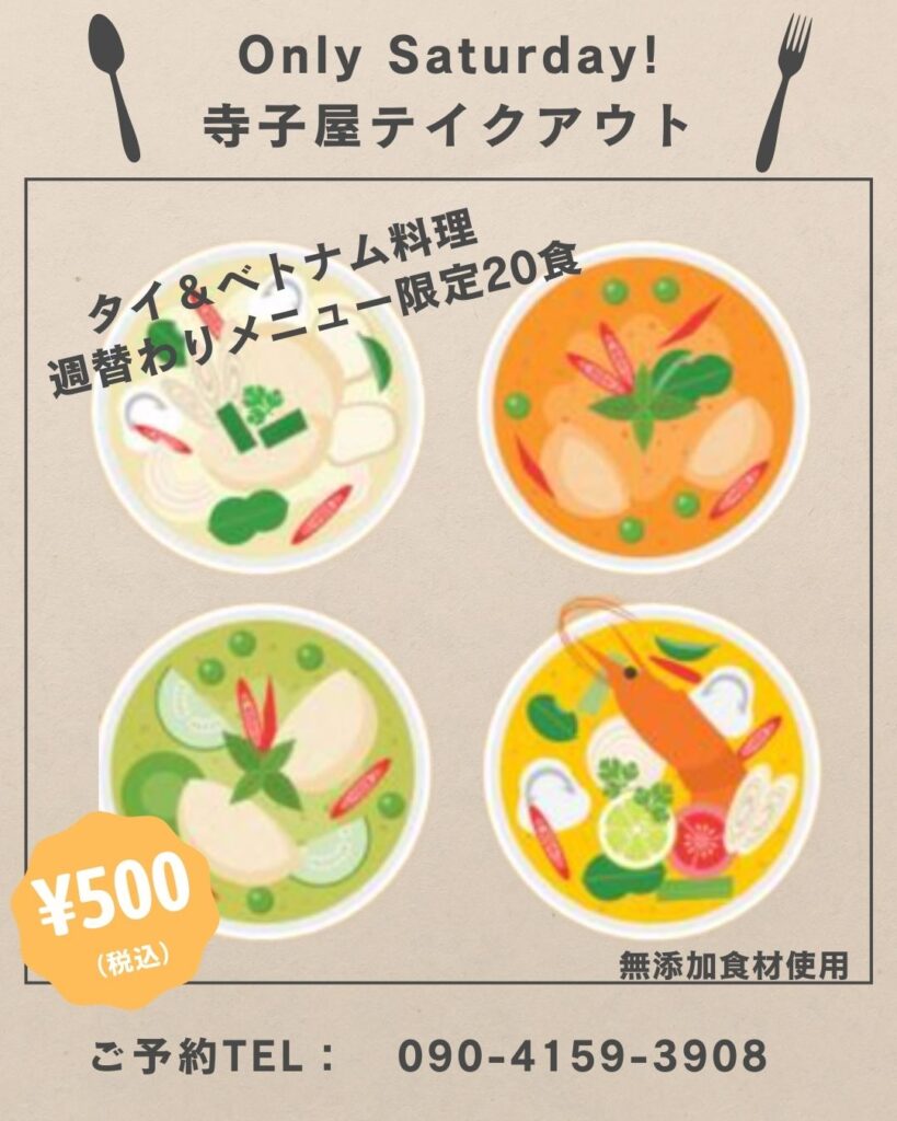 寺子屋でテイクアウト始めました。本格的タイ料理!東京で修行してきたプロのシェフが作ります。